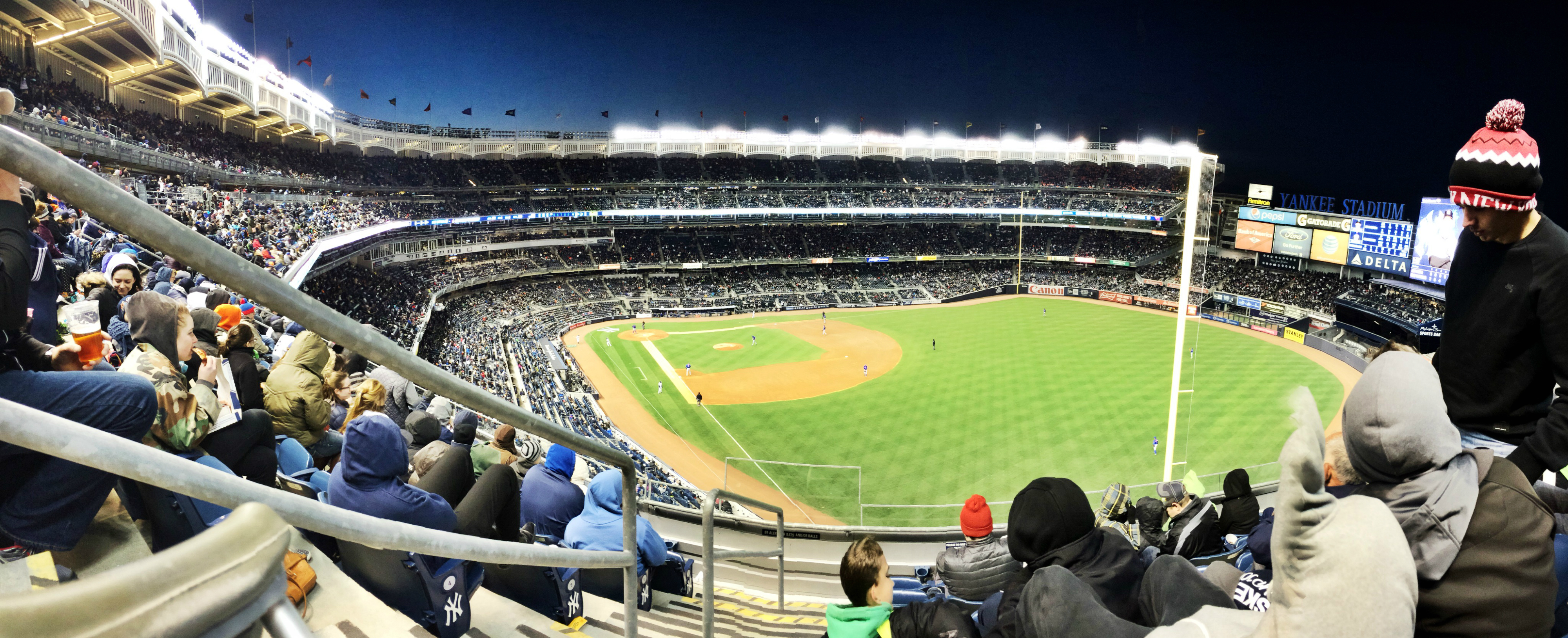 The Yankees won! Our seats were amazing, minus the fact that we were facing the wind, as our hats were blown away, and our faces were burnt by the heavy wind. Freezing but SO MUCH FUN!